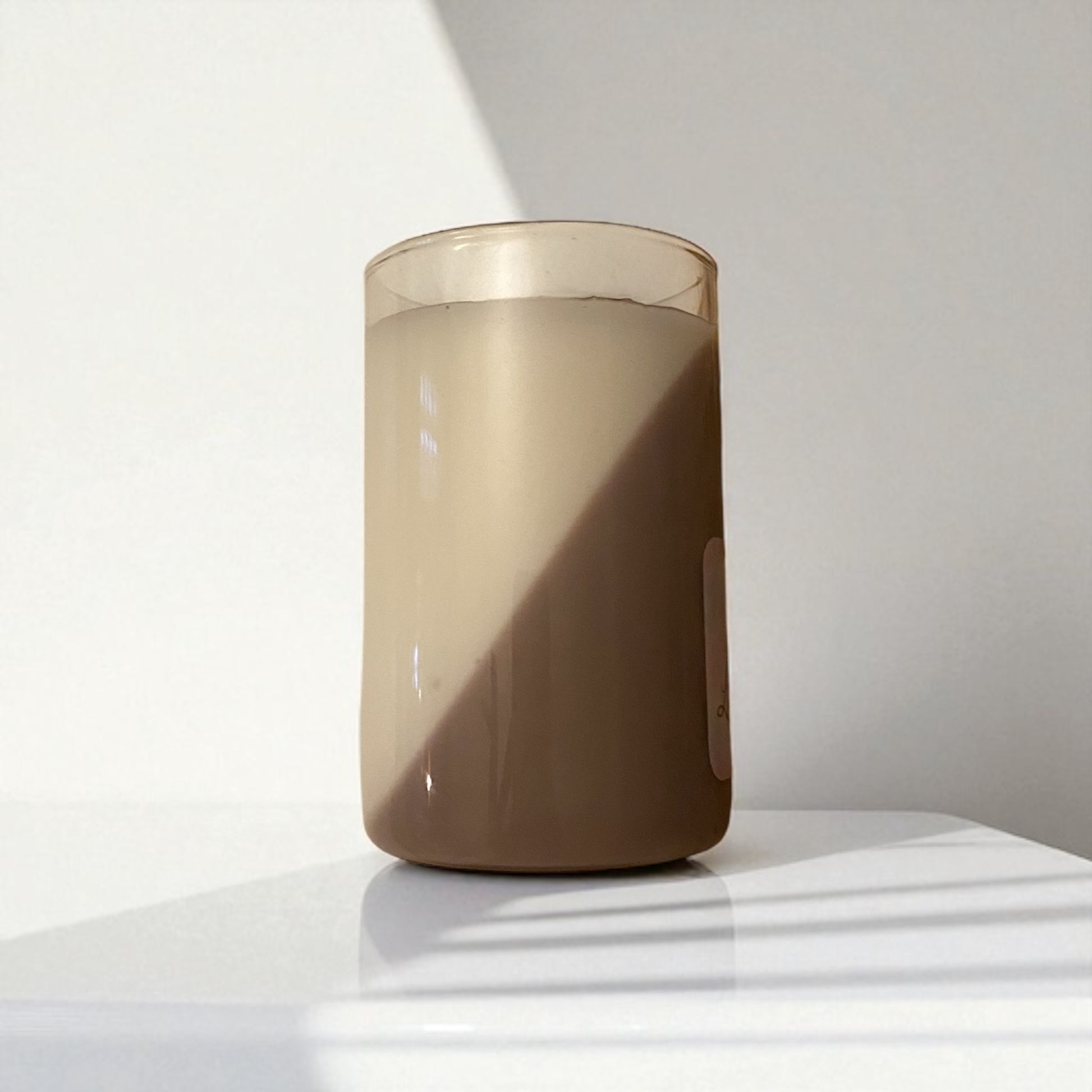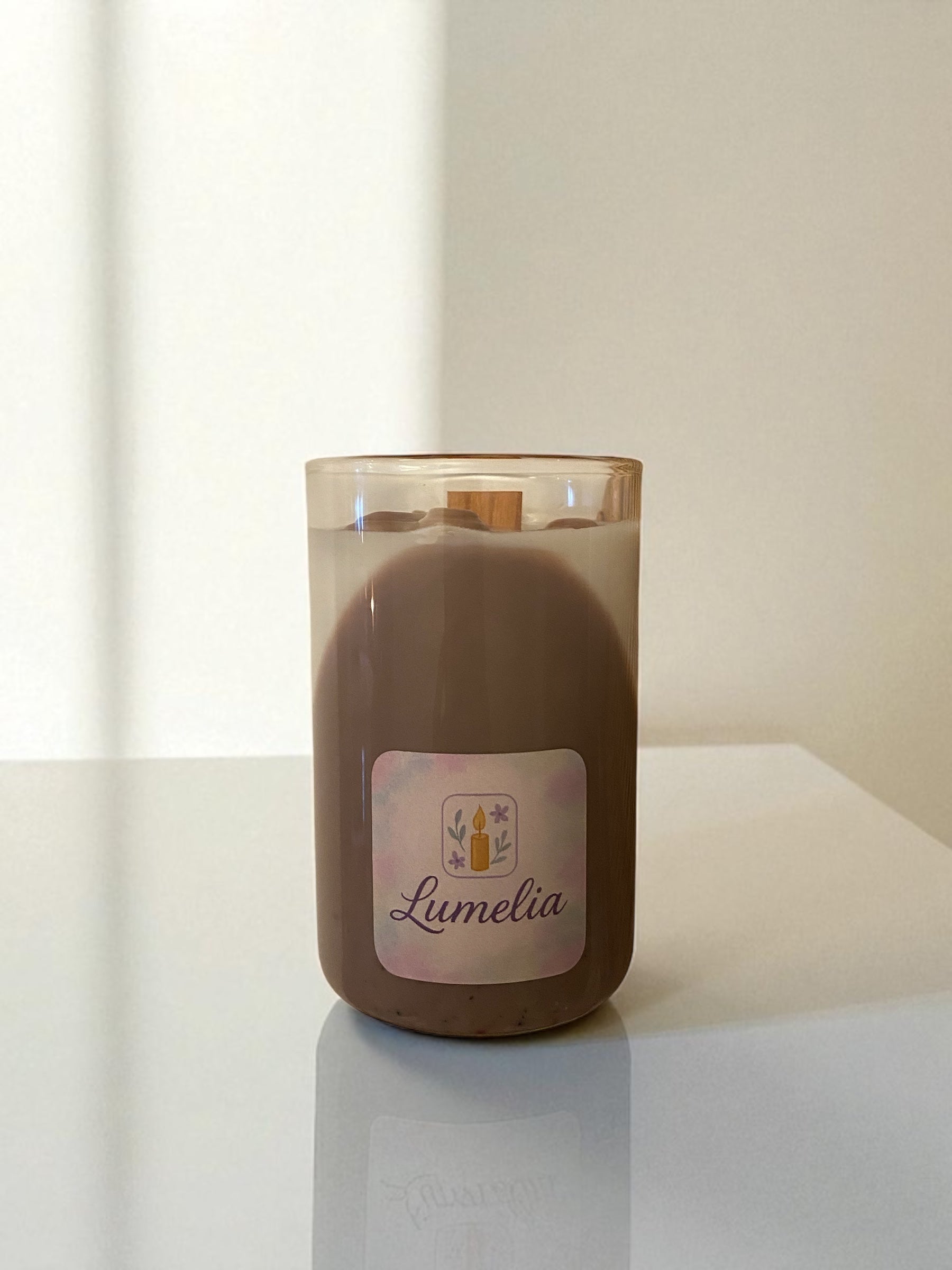 Vela bicolor con decoración musical. Intenso aroma a café.