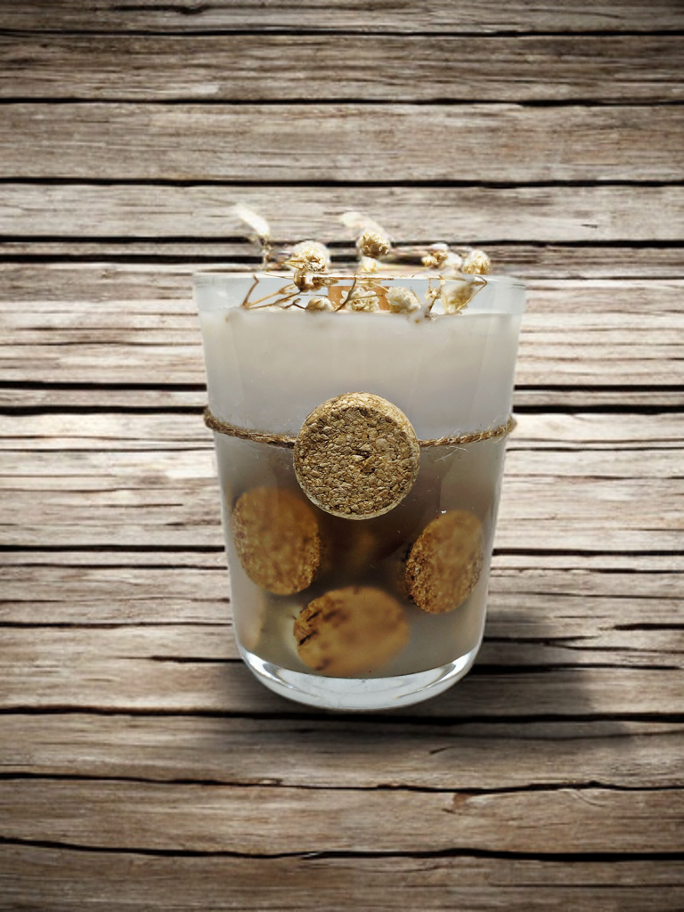 Vela de gel & cera de soja 100% natural. Decoración de corchos.